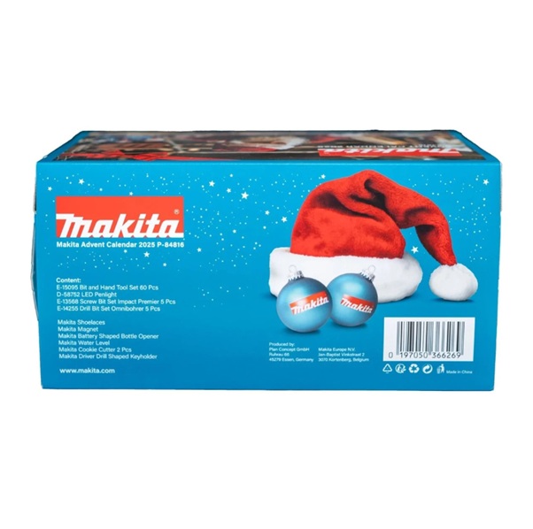 Makita 2025 Advent Calendar containg the below items and also including Exclusive Makita Promotional Items.