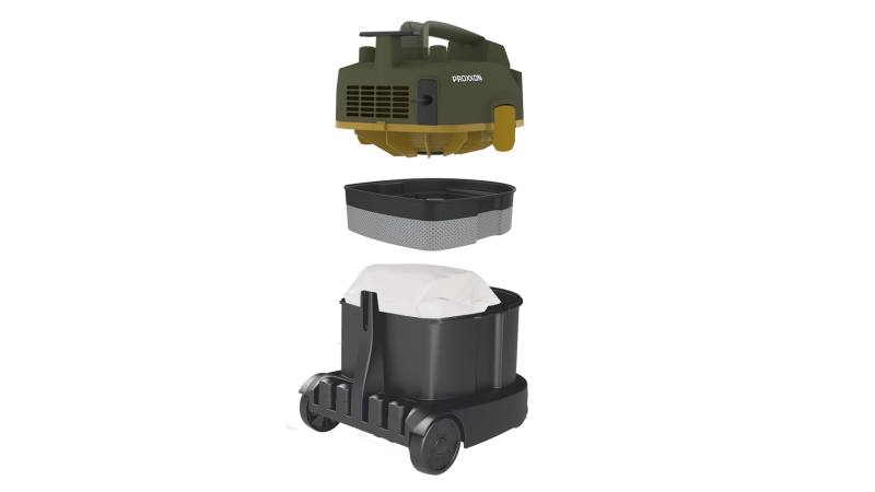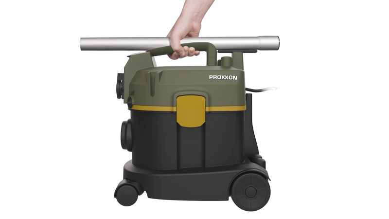 Complete with antistatic suction hose, two aluminium suction tubes, floor nozzle, crevice nozzle with brush ring, filter basket, fleece filter bag and suction adapter for PROXXON devices (can also be clamped in a vice).