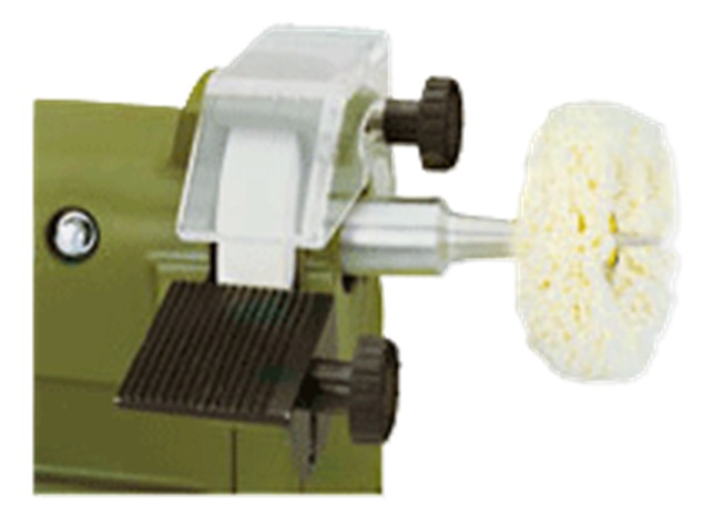 The right hand spindle accepts the polishing arbor, which is supplied as standard equipment.