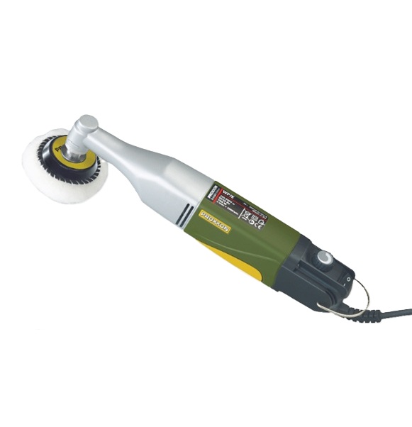 Quiet planetary gear in die-cast aluminium housing and continuously variable speed control (full-wave electronics) for low and constant speeds even during high contact pressure.