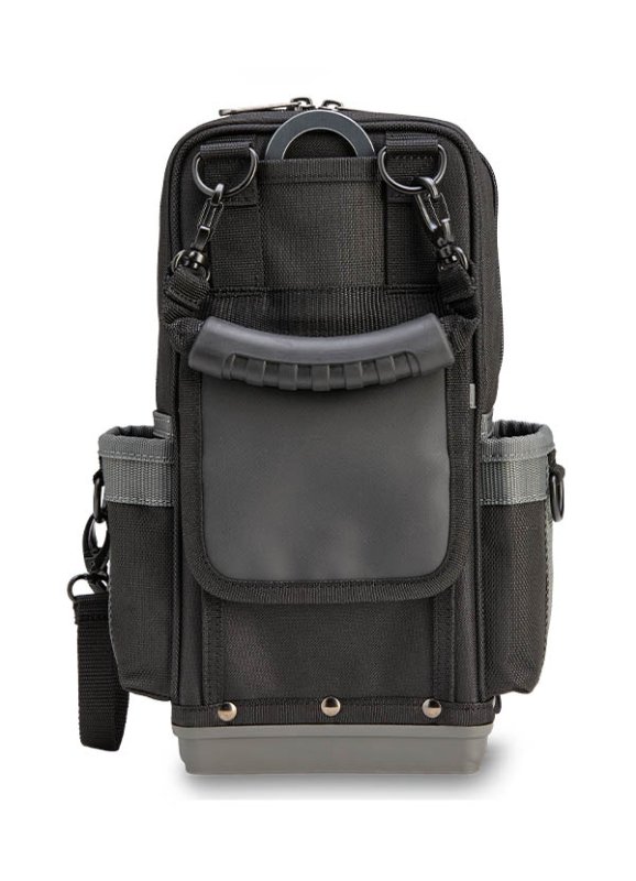 The main compartment accommodates two meters up to 12.5” tall, while the large front access sleeve pocket provides convenient storage for hand tools.